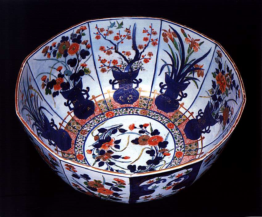 伊万里色絵草花図九角尾大鉢